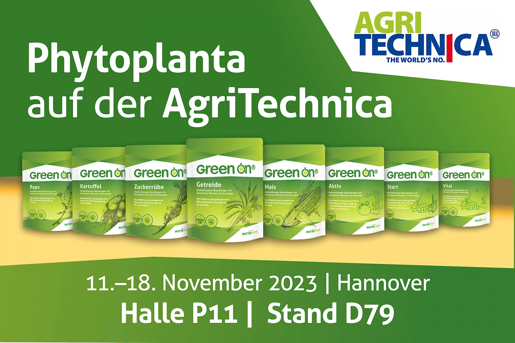 Erfahren Sie, wie Sie mittels Green On® Blattdüngung nachhaltig die Erträge Ihrer Ackerbau- und Sonderkulturen steigern können. Gerne informieren wir Sie an unserem Stand in Halle P11, Stand D79 über nachhaltiges Düngemanagement. Stellen Sie Fragen und diskutieren Sie mit unseren Experten vor Ort. Wir freuen uns auf Sie!