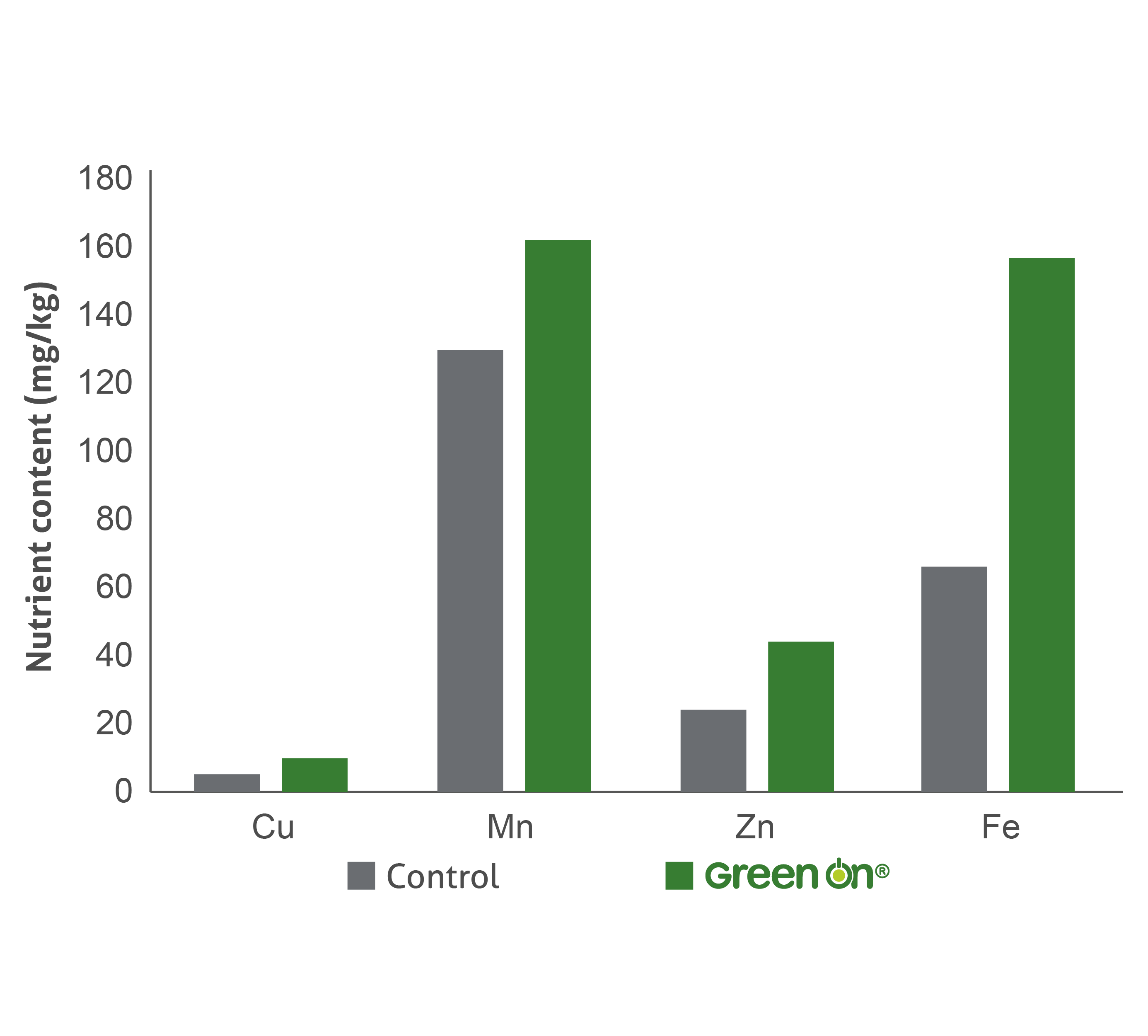 Green On® Vital supplies the special crops with micronutrients iron, zinc, manganese and copper in a targeted and efficient manner in critical growth phases in a balanced ratio to each other. The crops are optimally supplied right from the start and also receive an extra portion of iron.