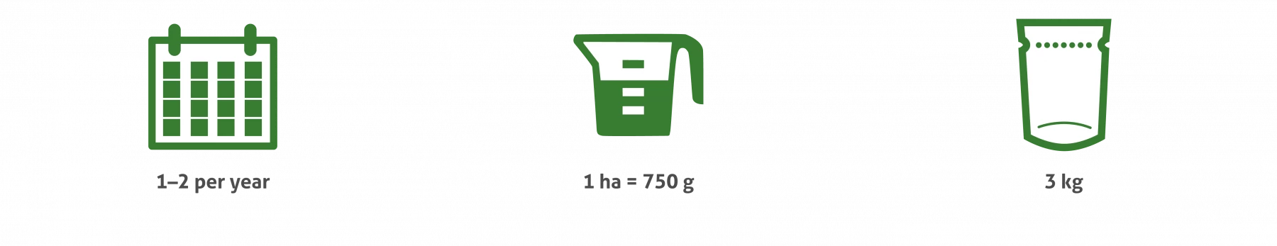 | Grapevine | 2x | From visible shoots and before bunch closure | 1x | From berry brightening | - | - |